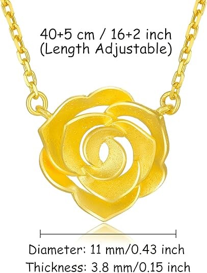 24K Solid Gold Pendant Necklace for Women, Real Pure Gold Jewelry Dainty Elegant Flower Pendant Chain for Men Girlfriend