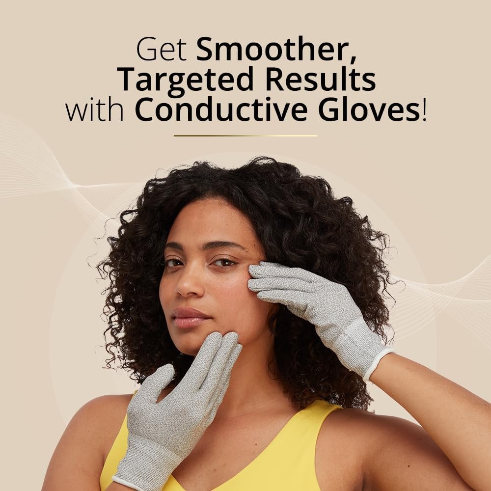 • Conductive Gloves for Precision & Hygiene – The included conductive gloves offer a mess-free alternative to traditional probes, allowing for a more precise and controlled facial massage. They enhance microcurrent penetration, ensuring smooth application while maintaining hygiene.