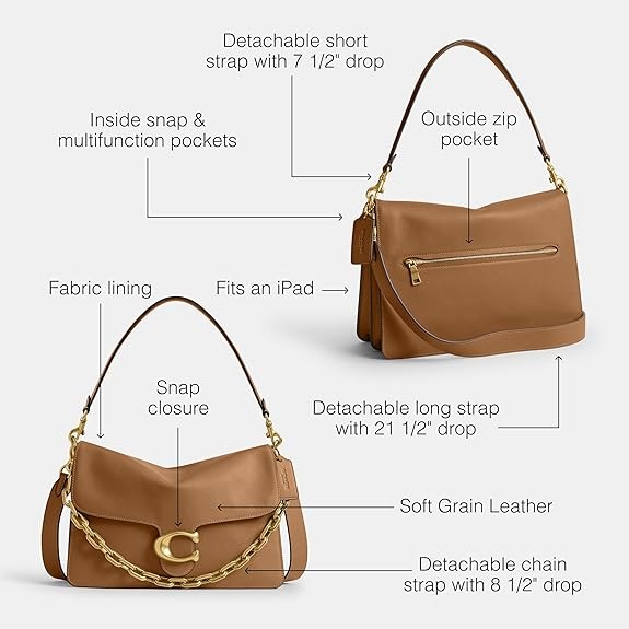 • Editor's Notes: A new take on an archival Coach classic, the Soft Grain Chain Tabby is designed for elegance with a sophisticated chain strap. Carry this stylish shoulder bag by its chain, or let it hang as a decorative accent