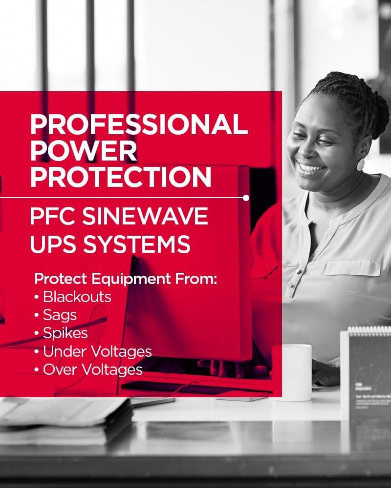 • 1500VA/1000W PFC Sine Wave Battery Backup Uninterruptible Power Supply (UPS) System designed to support active PFC and conventional power supplies; Safeguards computers, workstations, network devices, and telecom equipment