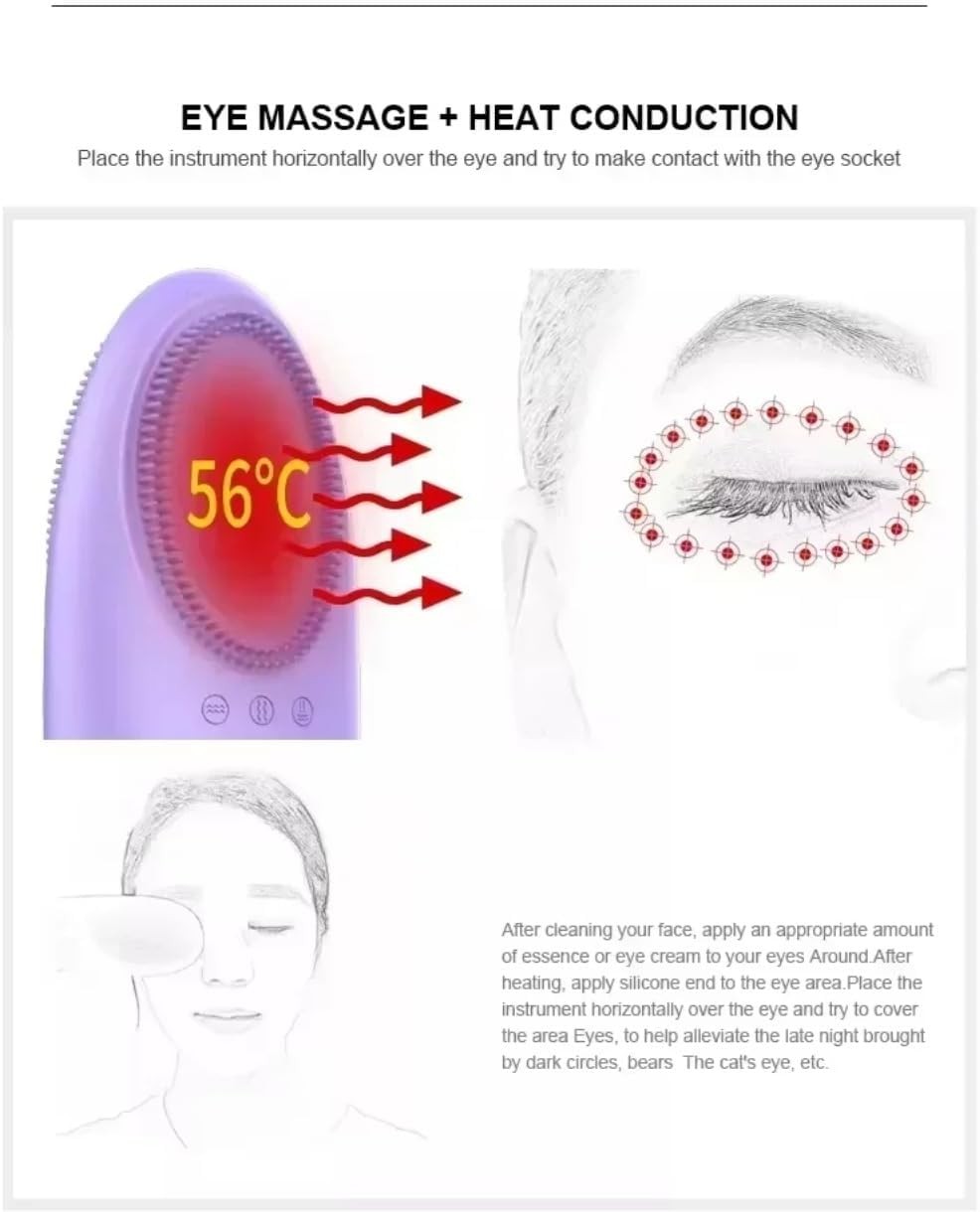 • FULLY CLEANSING DESIGN: Our silicone face scrubber is designed with thicker and coarser soft silicone bristles at the top of the bristles for high intensity cleaning. The nose cleaning area on the top of the machine makes it easy to clean hard-to-reach areas. Heated area on the back helps skin care products to absorb, mildness heating massage