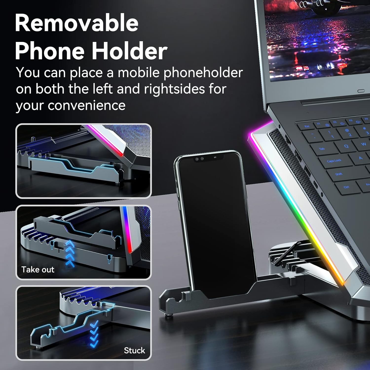 • Eight Super Cooling Fans: The newest 8-core laptop cooling pad can efficiently cool your laptop down, this laptop cooler has the air vent in the top and bottom of the case, you can set different modes for the cooling fans.