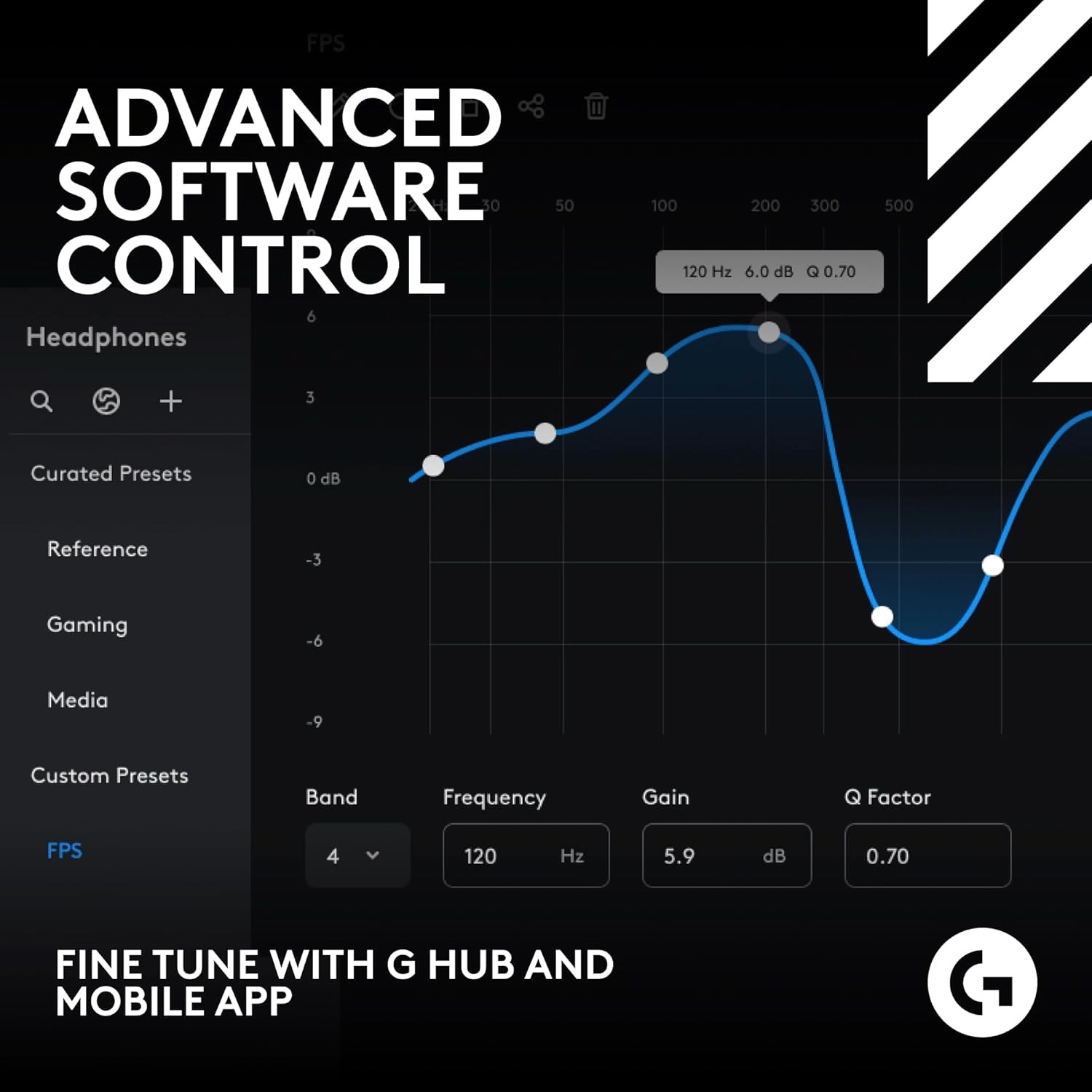 • Advanced G HUB and Mobile App Control: fine tune your gaming audio experience with 10-band parametric EQ, mic settings, noise reduction, stream output mixing and more