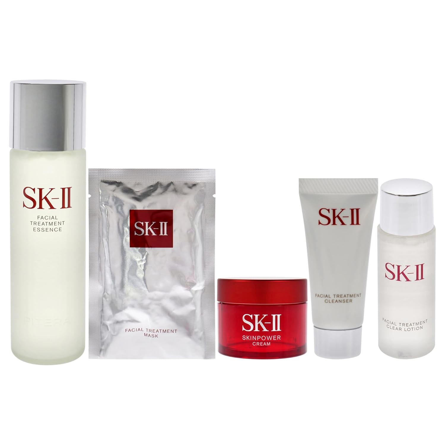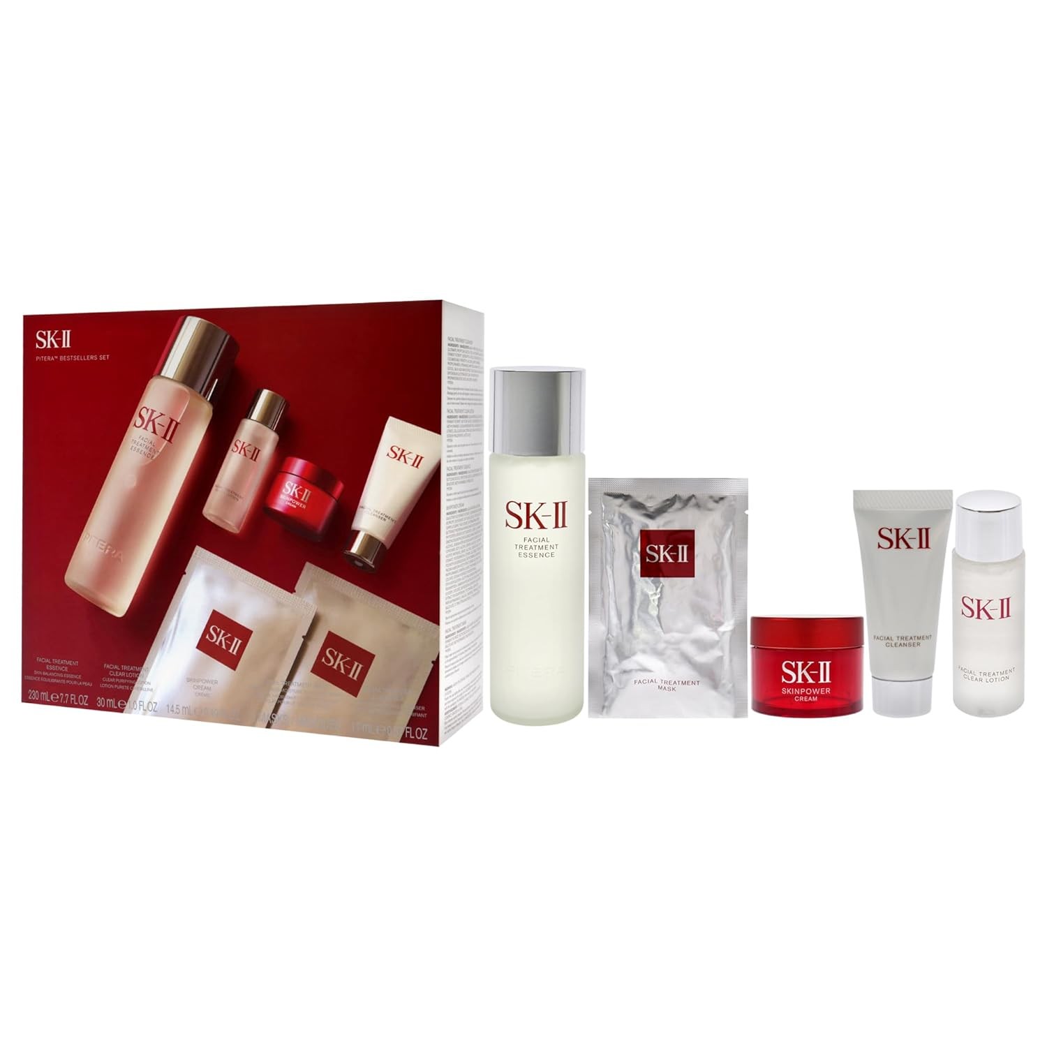 SK-II Pitera 6-Piece Set (Cleanser 0.57 Oz + Lotion 1 Oz + Essence 7.7 Oz + Skinpower Cream 0.49 Oz + 2 Facial Masks)